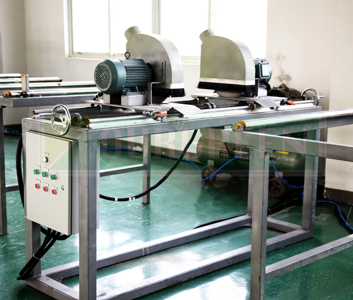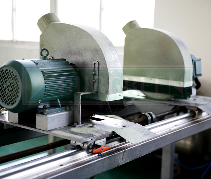 南京歐格設計制造的縱切機利用高速旋轉刀片將板材兩邊多余部分切除,切割形狀為直邊角。